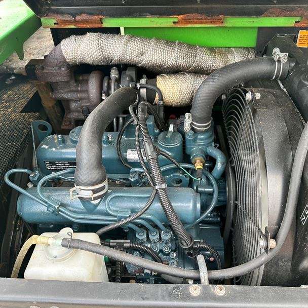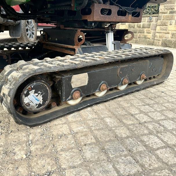 Powered by a reliable Kubota diesel engine, the chipper runs and works well. The unit features rubber tracks, a tilt system, and a turntable body, allowing the operator to direct the infeed chute without repositioning the entire machine. This combination offers safer and more efficient chipping, especially in restricted or uneven terrain.