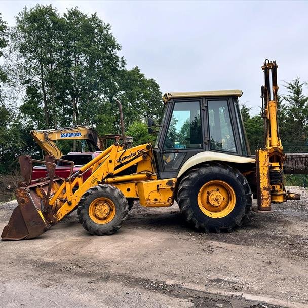 It is fitted with a Powershift transmission and 4-wheel drive, offering smooth operation on all surfaces. The machine features an extending dig, rear swing boom, and comes with a 4-in-1 front bucket complete with pallet forks. It also includes one backhoe bucket, making it suitable for trenching, loading and multi-purpose site work.